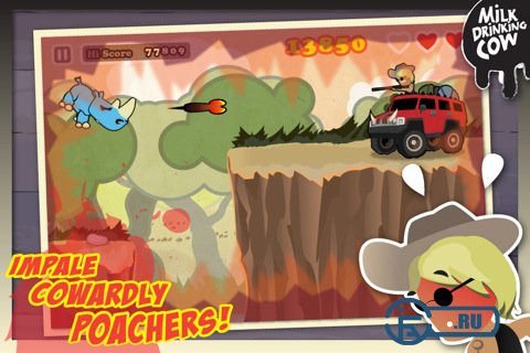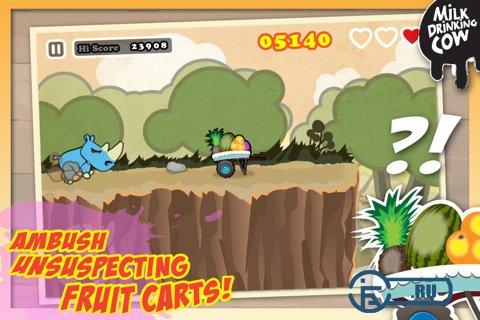 Angry Rhino разгоняясь всё быстрее и быстрее оставляет за собой следы разрухи по всей Африканской Саванне. Бегите как можно быстрее, прорываясь сквозь разнообразные уловки браконьеров, собирая при этом бонусные очки и жизненные силы, чтобы продолжать играть в эту динамичную игрушку.